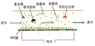 由于反滲透膜的膜孔徑非常小,因此能夠有效地去除水中的溶解鹽類、膠體、微生活、有機物等。
